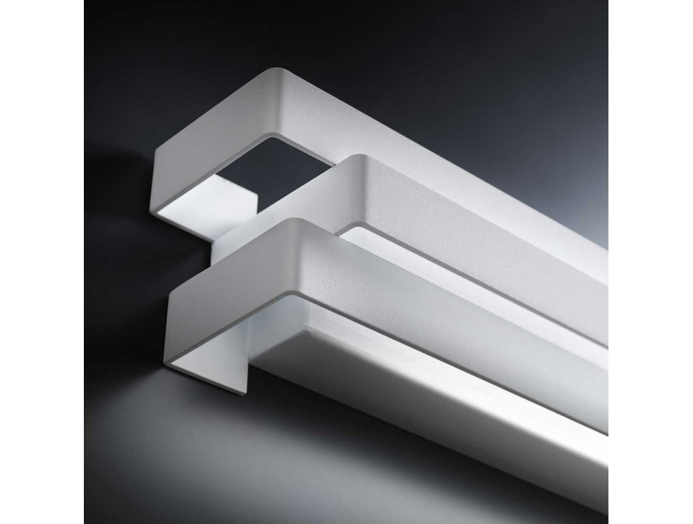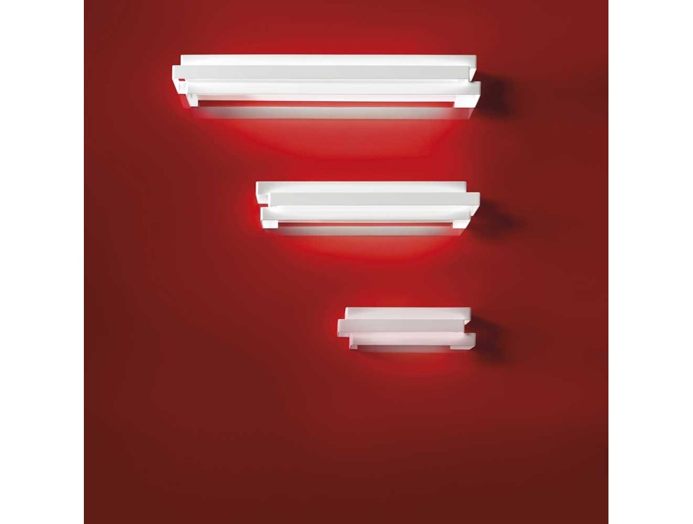Moderne LED-Wandleuchte aus lackiertem Metallrahmen mit Methacrylat-Diffusor, der indirekt Licht projiziert.