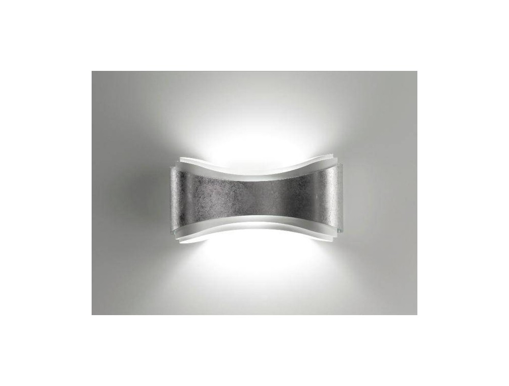 Moderne LED Wandleuchte mit Stahlstruktur und Diffusor. Moderne Lampe mit einer Stahlstruktur aus lasergeformten und handgearbeiteten Bändern. Die Seitenbänder sind in Silber oder Gold erhältlich, um die Lichtleistung zu verbessern und die Lampe elegant und raffiniert zu gestalten. Eine flüssige und zusammengesetzte Form für eine wirklich originelle Lampe. Ideal für die Beleuchtung von Räumen mit moderner Einrichtung, insbesondere für die Durchgangsbereiche, den Eingang, den Flur und die Treppe.