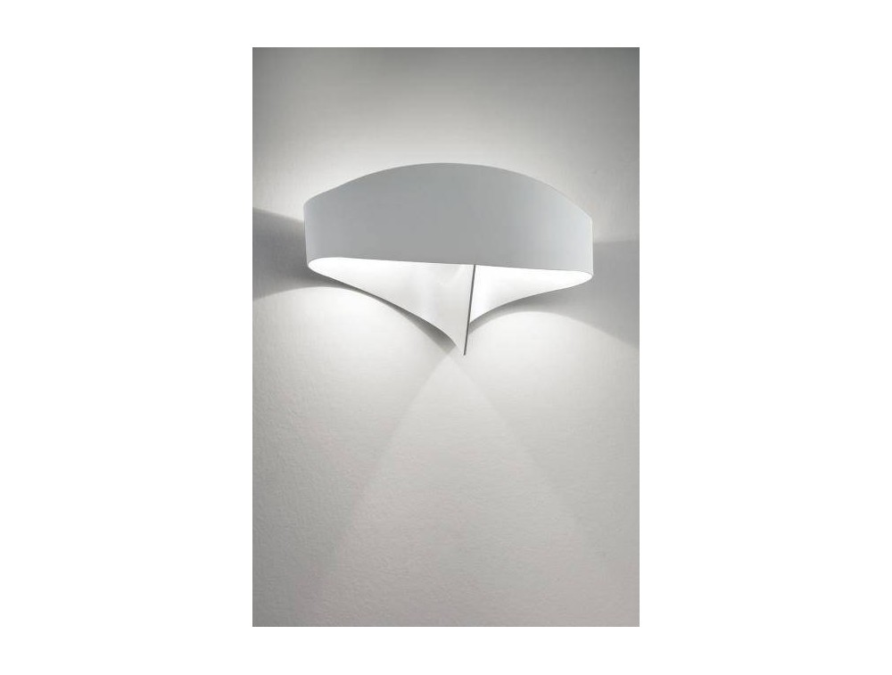 Moderne Wandleuchte mit Struktur und Diffusor aus Stahlblech, per Hand gebogen. Lampe, die aus einem laserförmigen Stahlband entsteht, das anschließend von Hand gefaltet wird, um ein ungeteiltes und einhüllendes Element zu schaffen. Scudo verfügt über eine doppelte Lichtausstrahlung und wird dank seiner filigranen und geschwungenen Form zu einem leichten dekorativen Element der Wände des Hauses, das sich perfekt zur Beleuchtung des Flurs, der Durchgangsbereiche, des Eingangsbereichs oder bestimmter Räume des Gesprächsbereichs und des Wohnbereichs eignet. Erhältlich aus drei Farben.