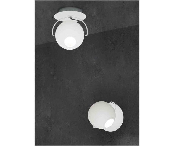 Wand- oder Deckenleuchte mit Struktur und Diffusor aus weißem Metall. Lampe mit einem modernen und essentiellen Design, einer Kugel mit LED-Lichtquelle, die direkt einen präzisen Punkt und indirekt den gesamten Raum beleuchtet. Ideale Lampe in Bädern, Fluren, Schlafzimmern, Wohnzimmern und modernen Design-Lounges.