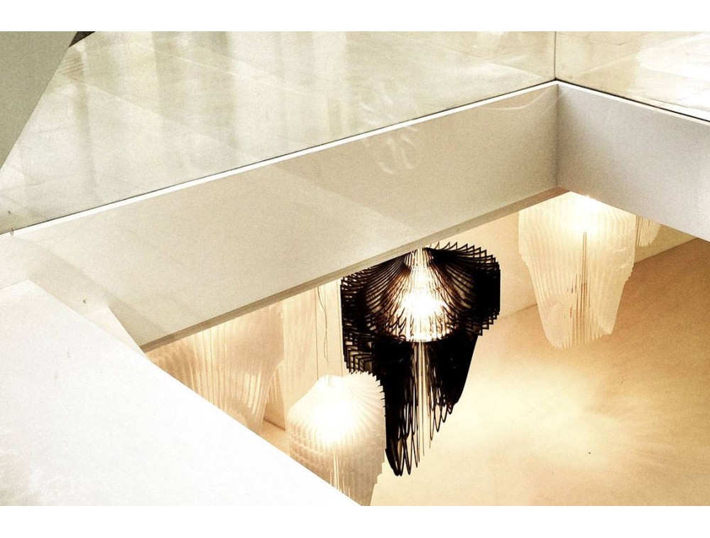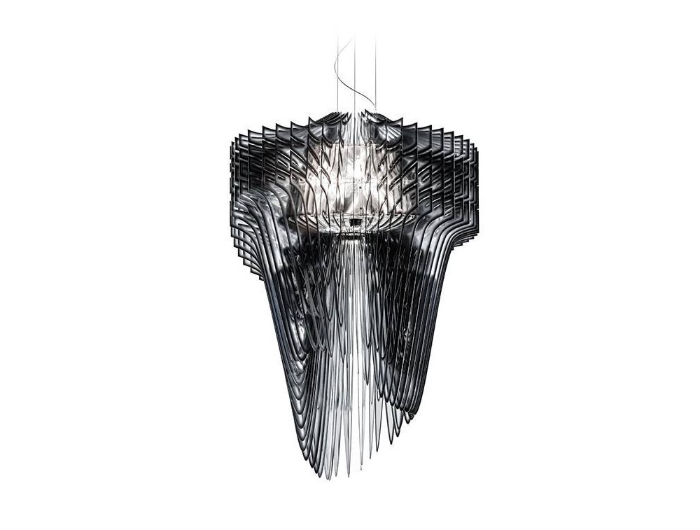 Diese neue Kollektion übersetzt ein scheinbar entmaterialisiertes Volumen, in dem Licht und Leightigkeit durch die Definition eines verblassten schwarzen Designs umhüllt werden. Aria besteht aus 50 Oberflächen, die dem Licht der LEDs entsprechen, die auf ihrer Achse positioniert sind, Konsistenz annehmen und den Raum einer pulsierenden Atmosphäre erleuchten. Ideale Lampe in jeder Art von Designumgebung.