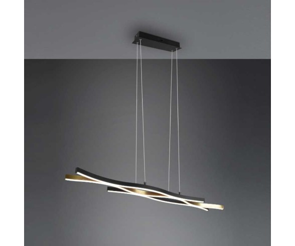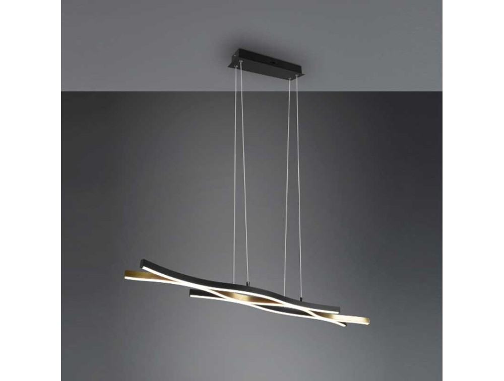 Die BLAZE Pendelleuchte von Trio Lighting besteht aus einer Metallstruktur, einem runden Sockel, einem Stab aus wellenförmigen integrierten LED-Stäben und einem integrierten Touch-Dimmer. Farbtemperatur 2300k + 3000k + 4000k (warmweißes, neutrales und naturweißes Licht). Über den Touchdimmer-Touchsensor lassen sich Lichtfarbe und Lichtintensität einstellen und auf verschiedene Stufen dimmen. Eine Lampe mit einem ultramodernen, originellen und raffinierten Design, geschwungenen Linien, die mit einer originellen und modischen Note leuchten.