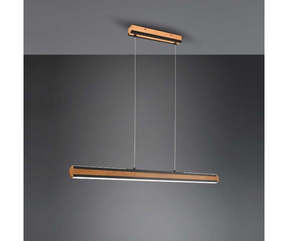 Trio, moderne Pendelleuchte aus Naturholz mit schwarzen oder Aluminiumkanten.