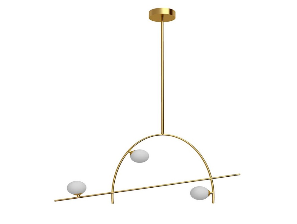 VIVIDA INTERNATIONAL, Aufhängung mit goldener Metallstruktur und Glasdiffusor.