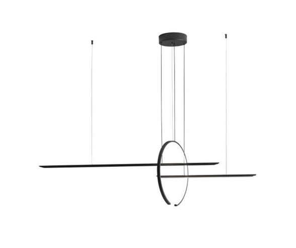 Der moderne LED In & Out Kronleuchter von Vivida International verfügt über ein streng technisches Design, das ein diffuses Licht mit hoher Helligkeit ausdrückt. Der Diffusor in der kreisförmigen und linearen Form verbirgt die LED-Quelle, was zu einem sehr niedrigen Blendungsindex führt. Eine Funktion, mit der der Beleuchtungskörper auch in unmittelbarer Nähe positioniert werden kann. Perfekt für die Beleuchtung von technischen Studios, Büros, modernen Küchen und allen großen modernen Umgebungen.