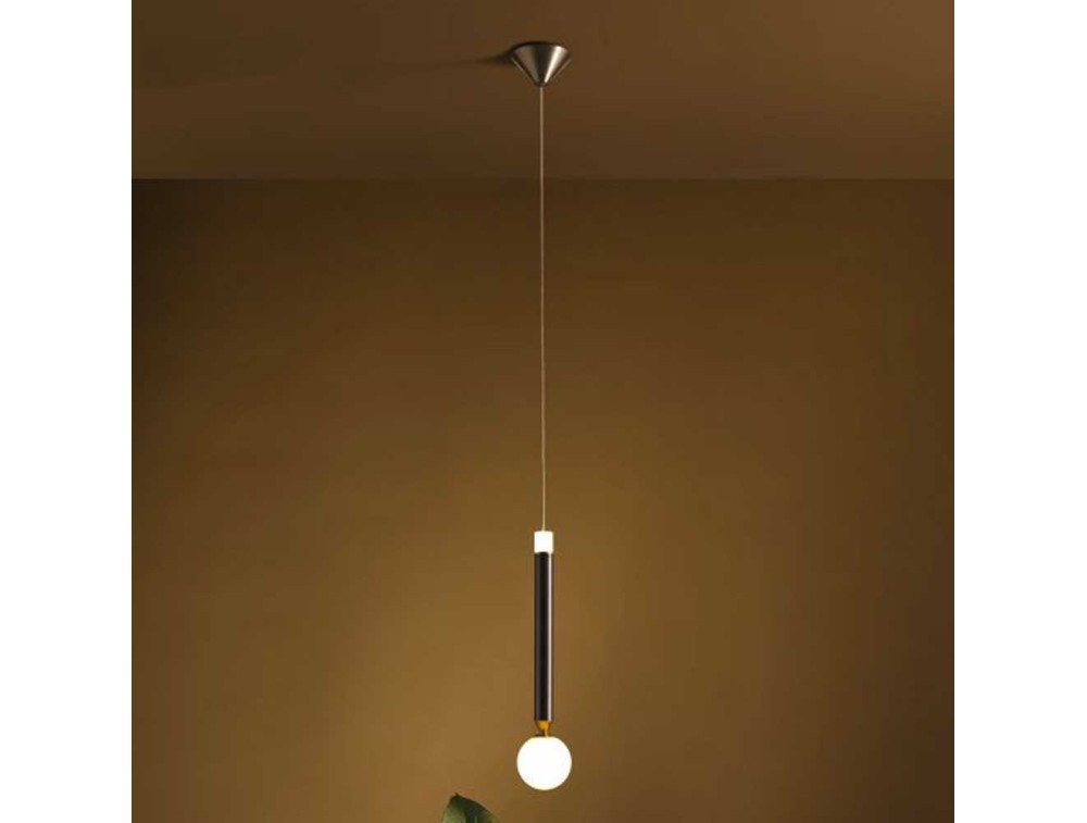 VIVIDA INTERNATIONAL, Aufhängung mit Struktur aus Aluminium, Glas und braunem Acryl.