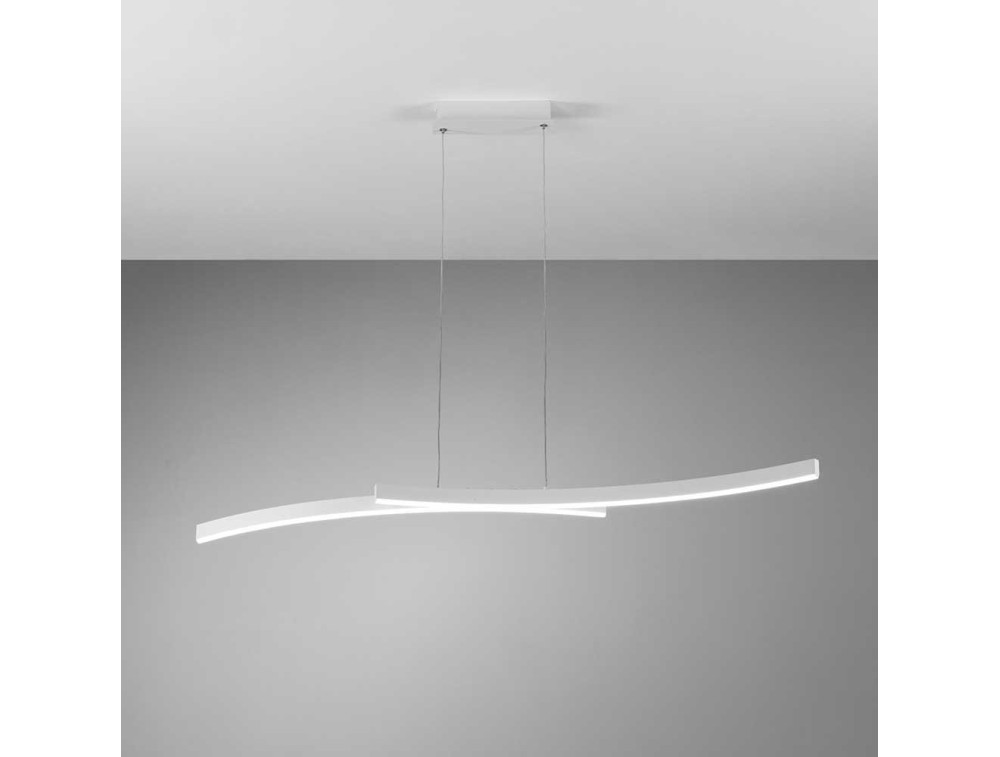 Modernes Pendelmodell Hyperbola, hergestellt von der internationalen Marke Vivida, aus Aluminium, in den Farben Sand, Weiß oder Schwarz und Acryldiffusor, mit einer internen LED, die über einen Wahlschalter zwischen 3000 K und 4000 K dimmbar ist