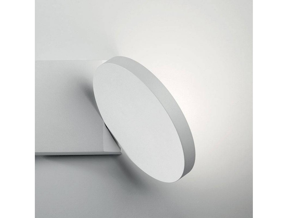 Wandleuchte aus Aluminiumstruktur mit LED-Quelle. Das Licht taucht magisch durch einen Kreis auf, wäscht die Wand und breitet sich in der Umgebung aus. Eine Lampe mit basic und leuchtendem Design, dank ihrer scharfen Linien des räumlichen Parallelepipeds, die die sanften Kurven des Kreises treffen. Ideal in Flure, Schlafzimmer, Wohnbereiche aus modernem Design.