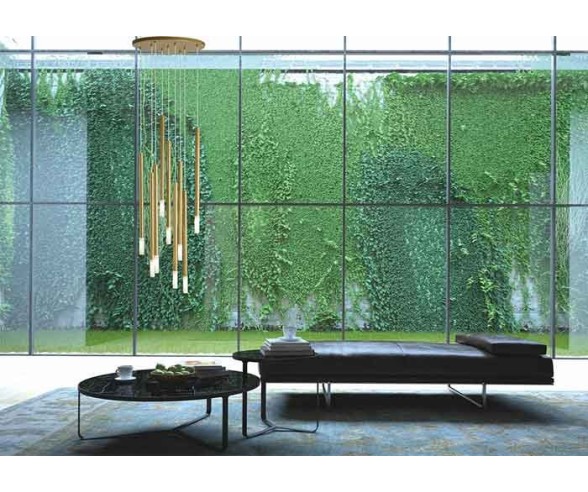 Kollektion von Pendell- und Wandleuchten, hergestellt aus Stahlrohren die mit Epoxidpulver beschichtet sind und sich geschickt und unregelmäßig kreuzen. Von den Enden der Struktur wird das Licht durch weiße Borosilicatstrahler verteilt. Ideal für alle Umgebungen mit modernem Stil wie Wohnbereiche, Schlafzimmer oder Vertragsumgebungen.