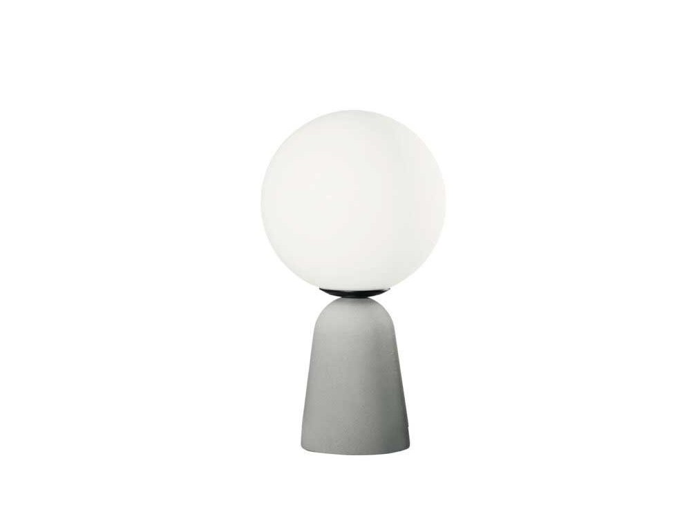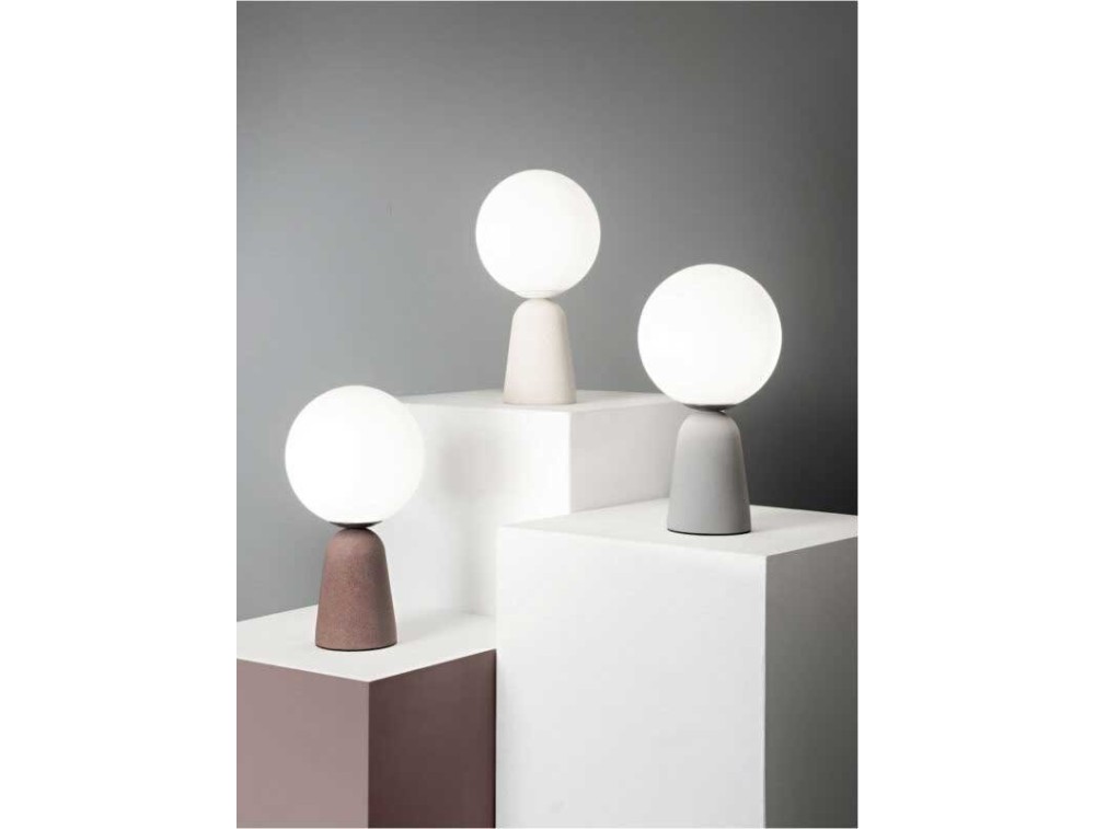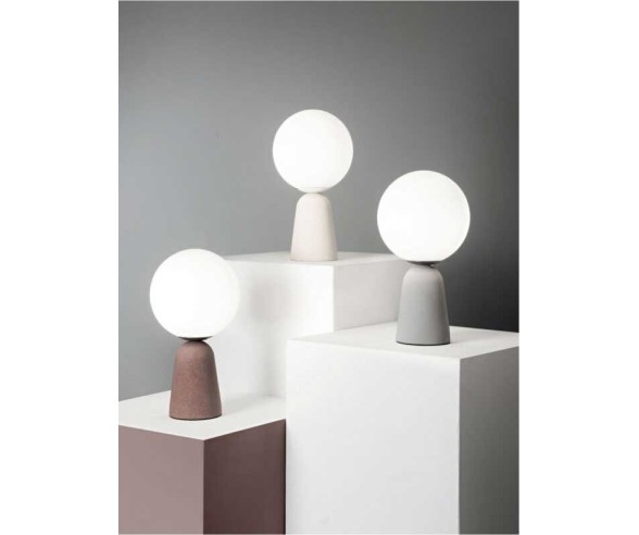 Eine neue Rock-Kollektion von Nachttischlampen oder Nachttischlampen für Schlafzimmer im modernen Stil, ein schlichtes und minimalistisches Design für diese Lampen mit einem konischen Betonsockel, erhältlich in Grau, Rot oder Weiß und Glasdiffusor.