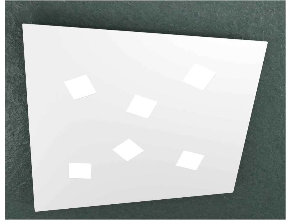 Moderne Deckenleuchte mit Blechstruktur in den Farben Sand, Grau oder Weiß und Acryldiffusoren. Als Leuchte mit einer minimalistischen und diskreten Linie leuchtet sie, ohne in die Einrichtung des Raumes einzudringen, in dem sie sich befindet. Struktur mit geometrischem Design, das an ein unregelmäßig geformtes Rechteck erinnert, in dem die Diffusoren angeordnet sind und ihren Lichtstrahl nach unten reflektieren. Innovativ, ideal in Umgebungen jeder Größe wie Wohnzimmer, Büro, Schlafzimmer, Flur und Bad in modernem und linearem Design.