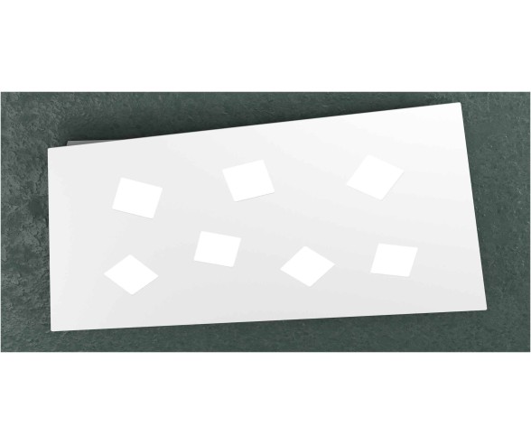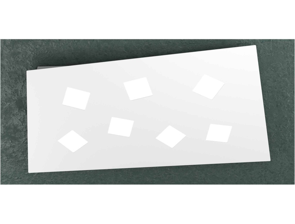 Moderne Deckenleuchte mit Blechstruktur in den Farben Sand, Grau oder Weiß und Acryldiffusoren. Als Leuchte mit einer minimalistischen und diskreten Linie leuchtet sie, ohne in die Einrichtung des Raumes einzudringen, in dem sie sich befindet. Struktur mit geometrischem Design, das an ein unregelmäßig geformtes Rechteck erinnert, in dem die Diffusoren angeordnet sind und ihren Lichtstrahl nach unten reflektieren. Innovativ, ideal in Umgebungen jeder Größe wie Wohnzimmer, Büro, Schlafzimmer, Flur und Bad in modernem und linearem Design.