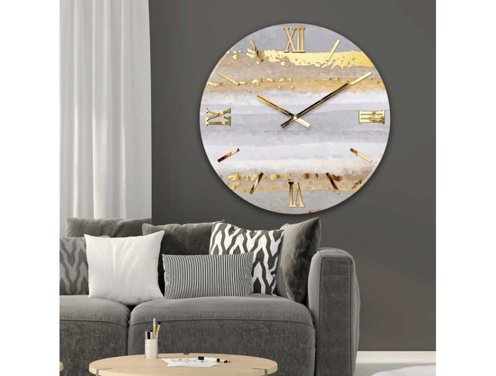 Diese Uhr ist eine Variation des abstrakten Stils und besticht durch eine kühle, neutrale Farbpalette mit metallischen Details. Sie ist ein elegantes Wohnaccessoire und ideal für moderne Räume mit neutralen Tönen. Versandkostenfrei und 2 Jahre Garantie.
