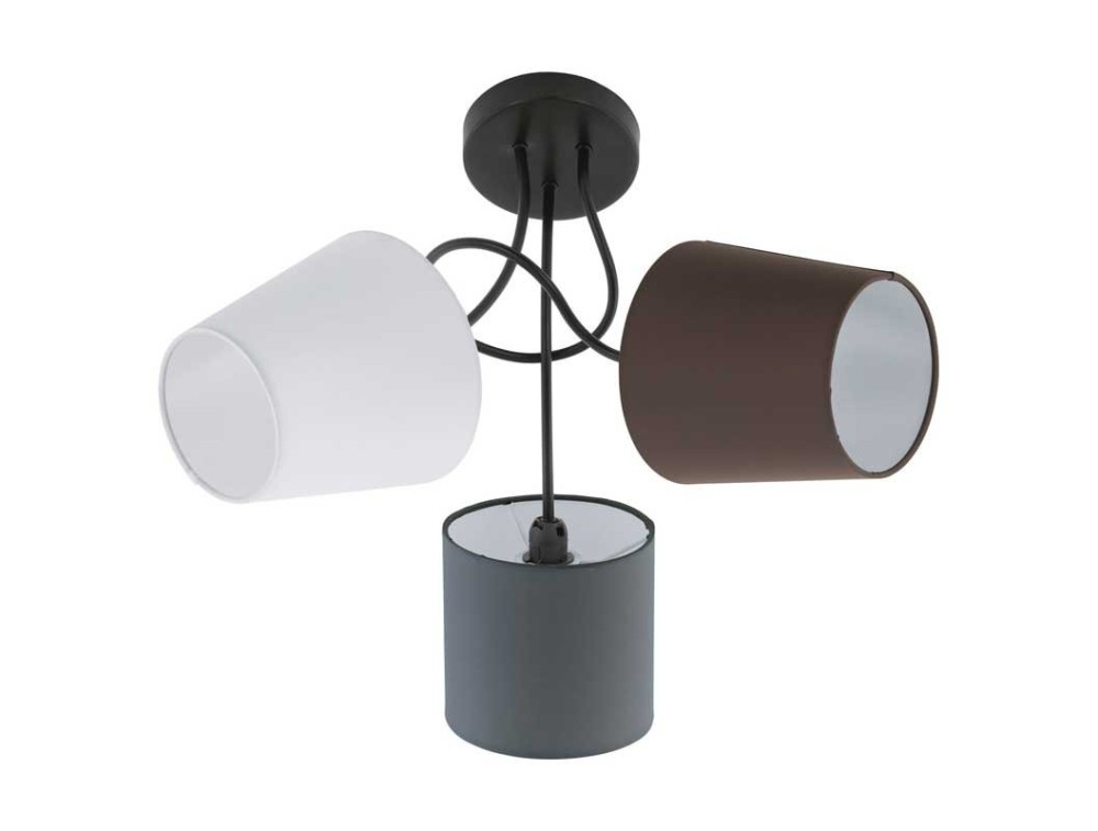 Die drei Lampenschirme in unterschiedlichen Farben, in Anthrazit, Weiß und Braun, verleihen der Lampe ein interessantes und zugleich harmonisches Aussehen, das durch die unterschiedlichen Formen der Lampenschirme hervorgehoben wird. Die Deckenleuchte harmoniert perfekt mit modernen Einrichtungsstilen und sorgt für eine angenehme Beleuchtung im Wohnzimmer, Schlafzimmer, Esszimmer oder Flur. Leuchtmittel sind nicht im Lieferumfang enthalten. Für die Lampe ist jedes Leuchtmittel mit E14-Fassung geeignet.