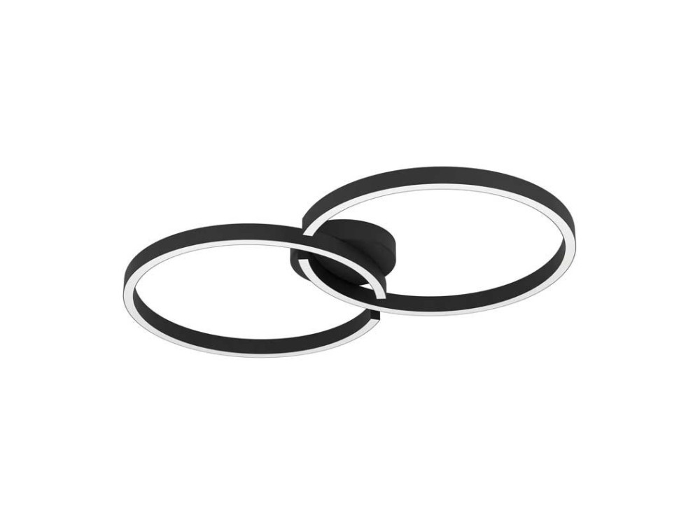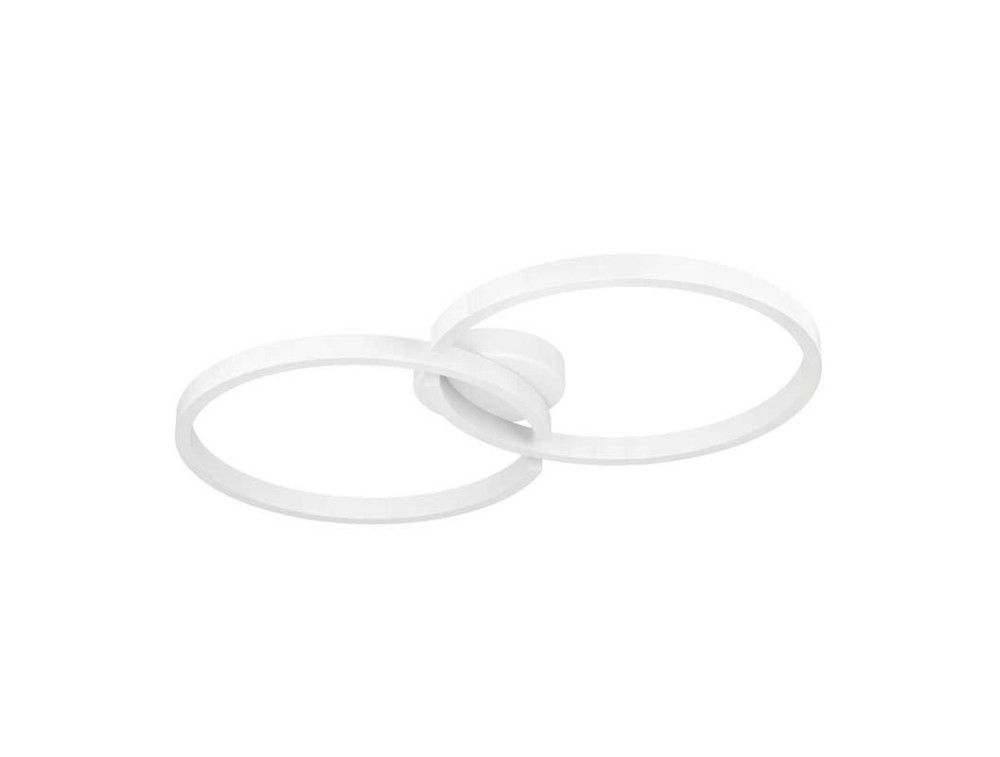 Deckenleuchte aus schwarzem oder weißem Metall, mit weißem Polycarbonat-Diffusor, aus dem das Licht austritt. Inklusive Fernbedienung mit Lichtfarbwechselfunktion, Dimmbarkeit.