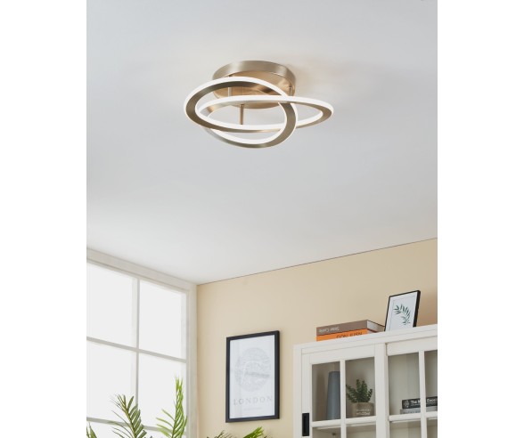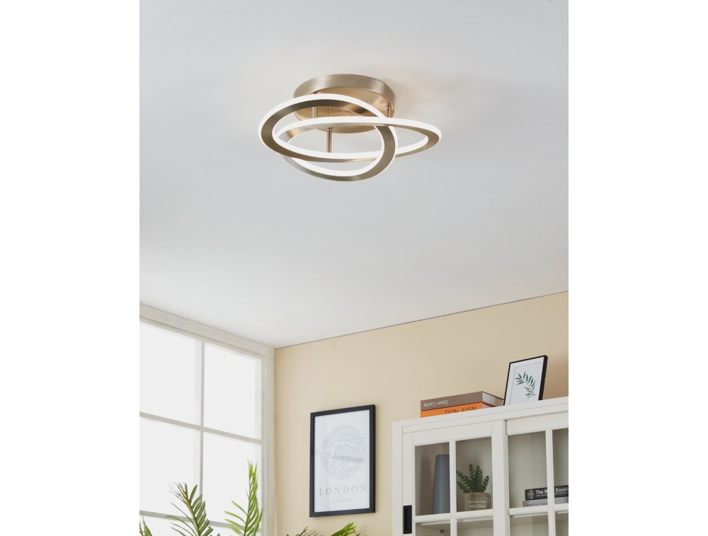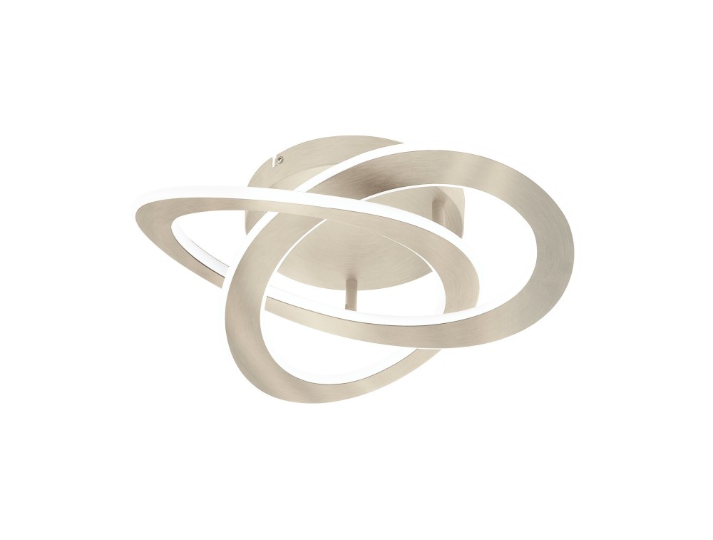 Deckenleuchte aus satiniertem Nickelaluminium mit weißem Polycarbonat, aus dem das LED-Licht austritt. LED im Lieferumfang enthalten, 5 Jahre Garantie.