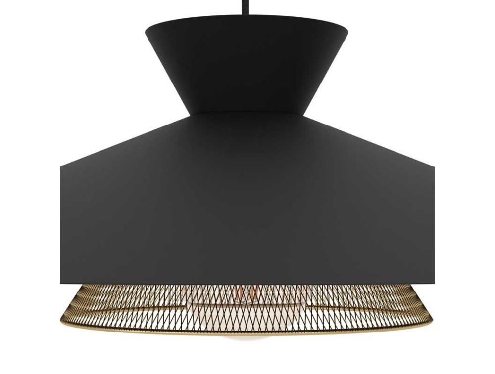 Idealer Kronleuchter für eine mittelgroße Küche oder ein Wohnzimmer aus schwarzem Stahl und Messing.