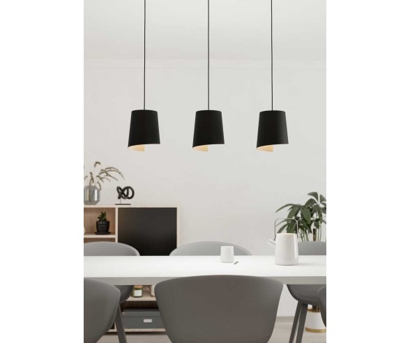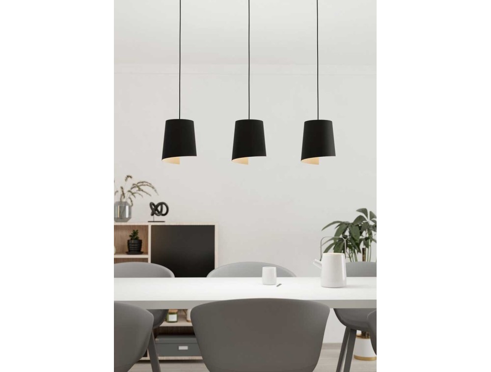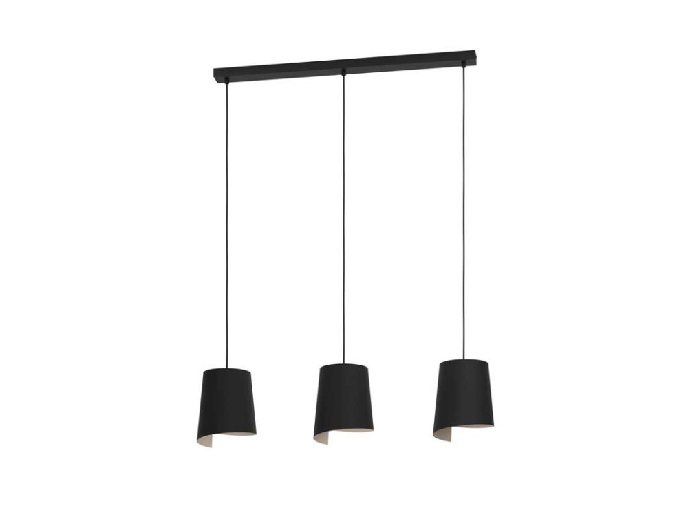 Kronleuchter aus schwarzem Stahl, ideal für Küche oder Wohnzimmer, innen ist der Diffusor sandfarben. Ideal für eine Theke, einen Esstisch oder eine Halbinsel.