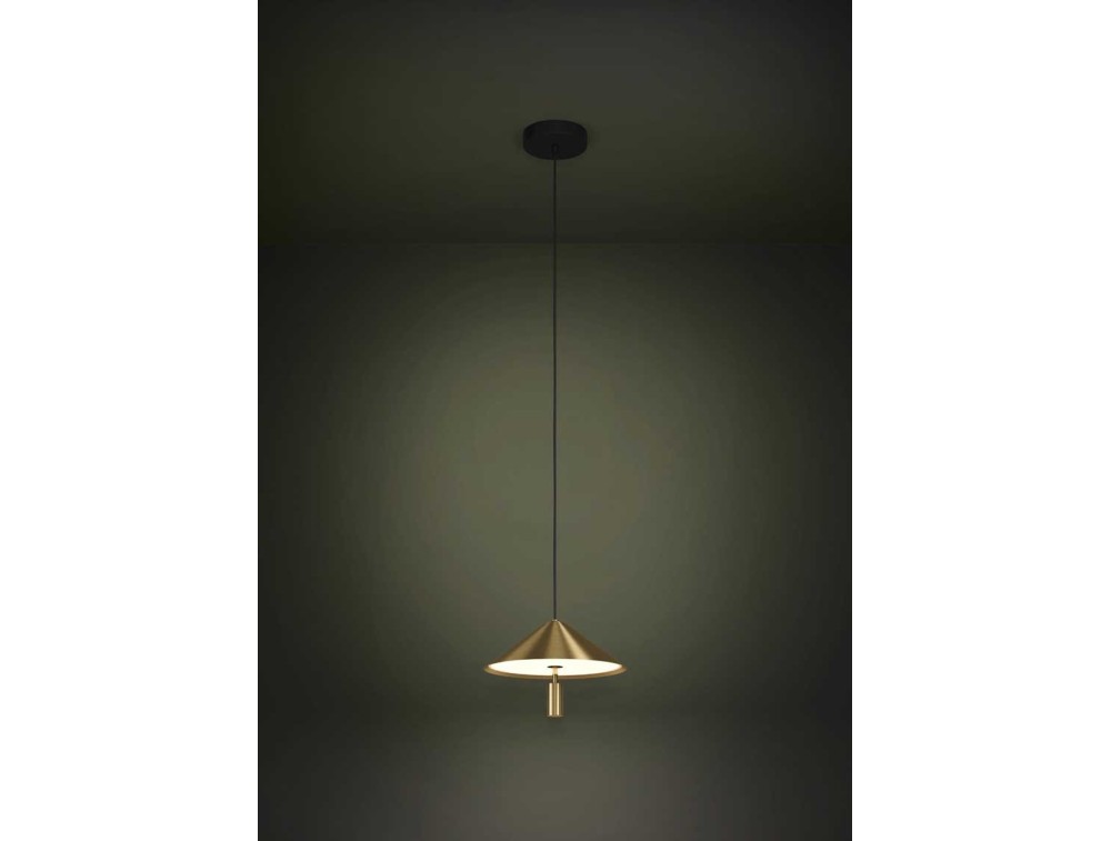 Kronleuchter aus schwarzem Stahl und gebürstetem Messing, ideal für Küche, Wohnzimmer oder Esszimmer. Integrierte dimmbare LED der neuesten Generation.