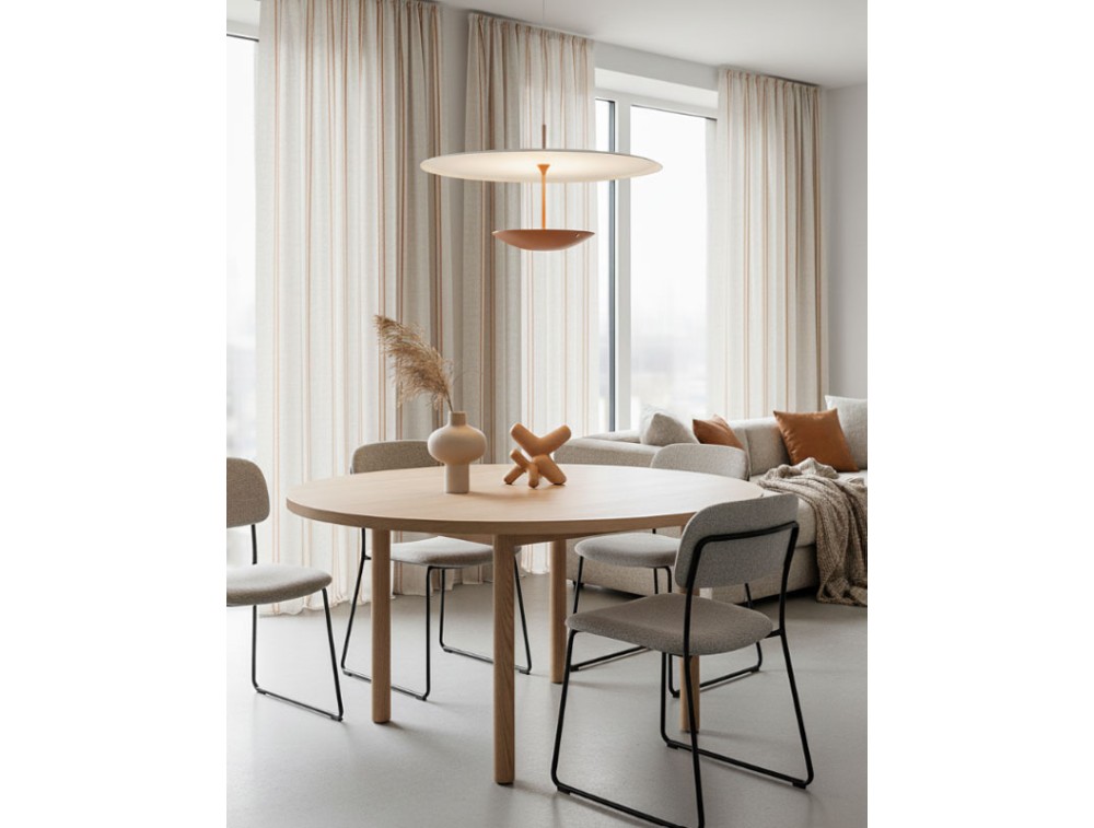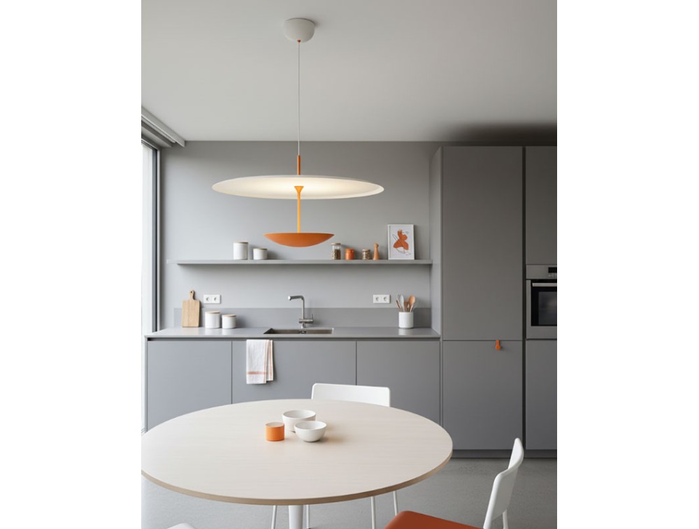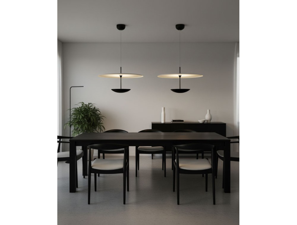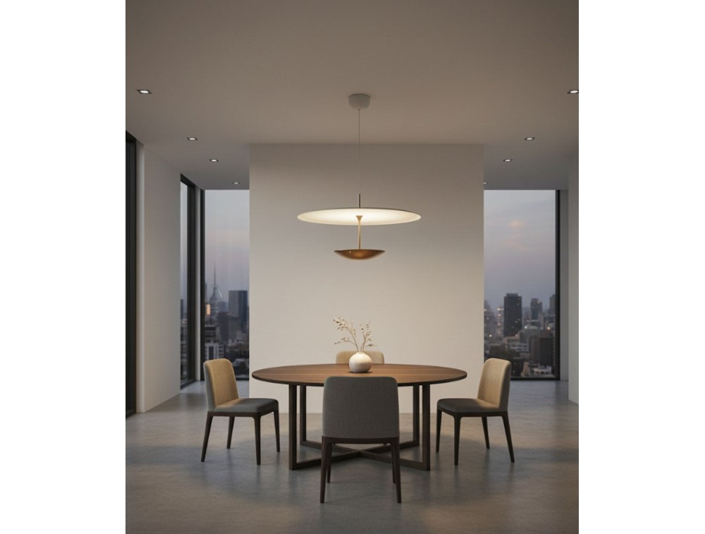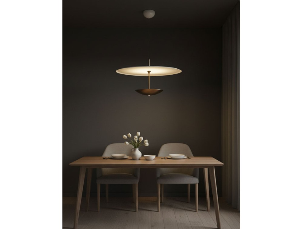 Diese aus Aluminium gefertigte Leuchte vereint innovative Technologie mit direkter Lichtwirkung. Sie fügt sich nahtlos in die Kollektion mit Deckenleuchten derselben Serie ein und bildet so ein harmonisches System, das zeitgenössisches Design durch die Balance von Form und Funktion interpretiert. Dank des höhenverstellbaren Systems lässt sich die Leuchte mühelos an jeden Raum und Bedarf anpassen. Die in den Leuchtenkörper integrierte Touch-Steuerung ermöglicht das Ein- und Ausschalten sowie die Anpassung der Lichtintensität per Fingertipp – für eine intuitive und schnelle Bedienung. Die minimalistisch gestaltete Leuchtscheibe erzeugt ein gleichmäßiges und stimmungsvolles Licht, ideal für funktionale Bereiche oder gemütliche Atmosphären. Die Möglichkeit, Höhe und Helligkeit zu verstellen, macht die Leuchte perfekt für Esstische, Kücheninseln, Arbeitsbereiche und Sitzgruppen.