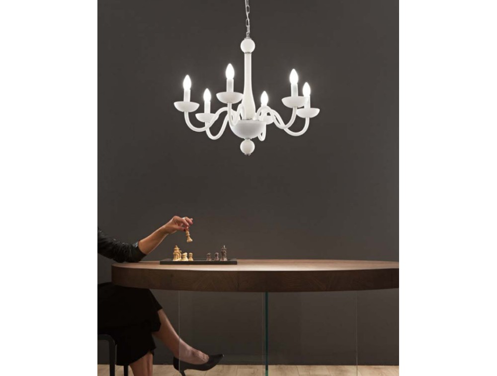Pendelleuchte aus mundgeblasenem Glas, erhältlich in Schwarz oder Satinweiß mit Chromoberfläche. Ideal für die Dekoration und Beleuchtung von Küchen, Wohn- und Schlafzimmern.