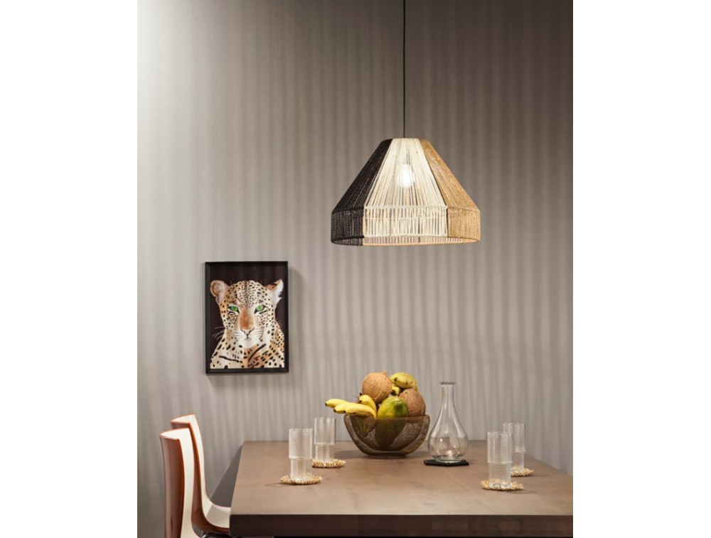 Diese Pendelleuchte ist die perfekte Wahl für alle, die ein Designelement suchen, das gleichzeitig ein Kunstwerk ist. Ihr eklektisches Design und die Kombination natürlicher Materialien machen sie zu einer Vielzahl von Stilen. Sie eignet sich perfekt über einem Esstisch oder im Wohnzimmer, wo sie zum Blickfang wird und dank des durch die Kabel fallenden Lichts eine warme und einladende Atmosphäre schafft. Der Versand ist kostenlos und die Garantie beträgt 2 Jahre.