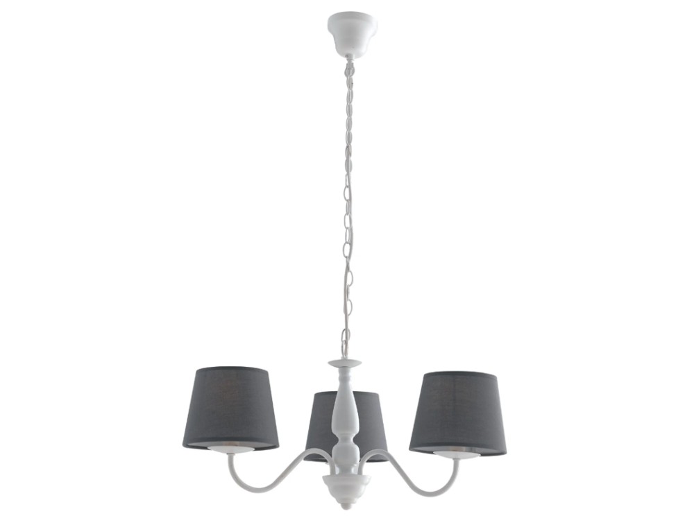 Weiße Metall-Pendelleuchte mit grauen Stoffschirmen. Für Küche, Wohnzimmer und Schlafzimmer.