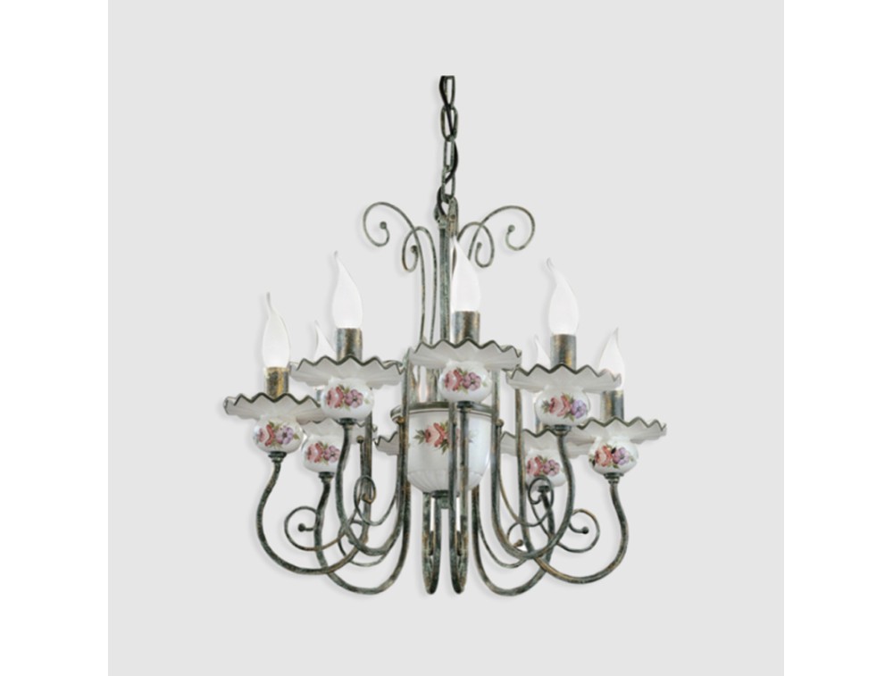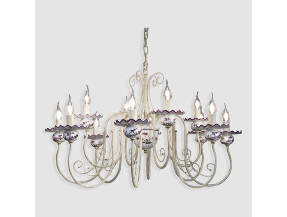Pendelleuchten mit 3, 5, 8 oder 12 Armen, mit lackierter Messingstruktur und Keramikrahmen. Handgefertigte Blumendekorationen machen jede Leuchte zu einem Schmuckstück. Klicken Sie auf den Link, um die Leuchte individuell zu gestalten, indem Sie die Dekoration oder die Rahmenfarbe ändern.