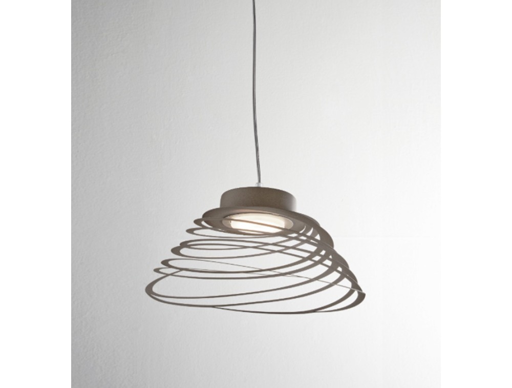Moderne Pendelleuchte mit spiralförmig geschliffenem Metallschirm. Erhältlich in Weiß, Sand und Anthrazit. Diese Leuchte eignet sich perfekt für Wohnzimmer und moderne Schlafzimmer und wirkt wie ein geometrisches Kunstwerk an der Decke.