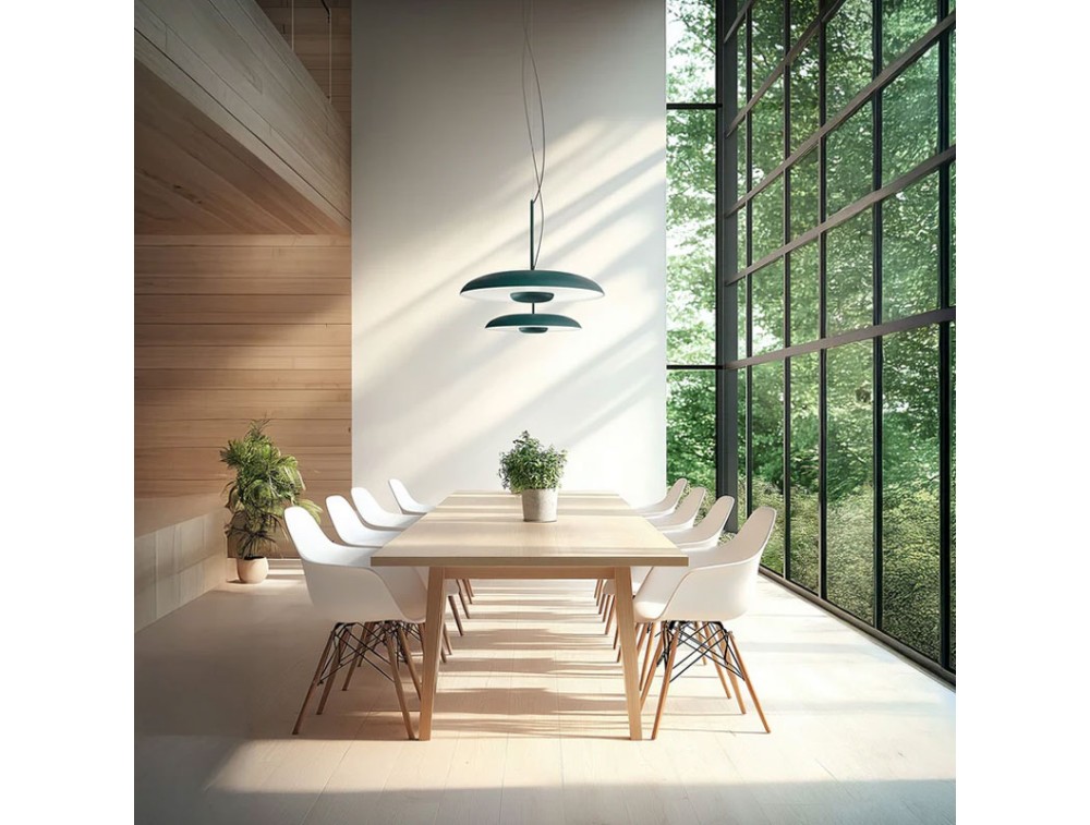 Eine Pendelleuchte im minimalistischen, modernen Design, ideal für Objekt-, Wohn- und Gastronomiebereiche. Der strukturierte, lackierte Aluminiumkorpus ist in Weiß, Schwarz, Pfirsich, Petrol und Tiefblau erhältlich und fügt sich nahtlos in jeden Einrichtungsstil ein – von dezent bis kreativ. Die mattweiße Innenlackierung optimiert die Lichtstreuung und sorgt für eine gleichmäßige, angenehme Beleuchtung. Ein besonderes Detail ist das Mittelelement in der gleichen Farbe wie die Außenlackierung, das für optische Ausgewogenheit und ein durchdachtes Design sorgt.