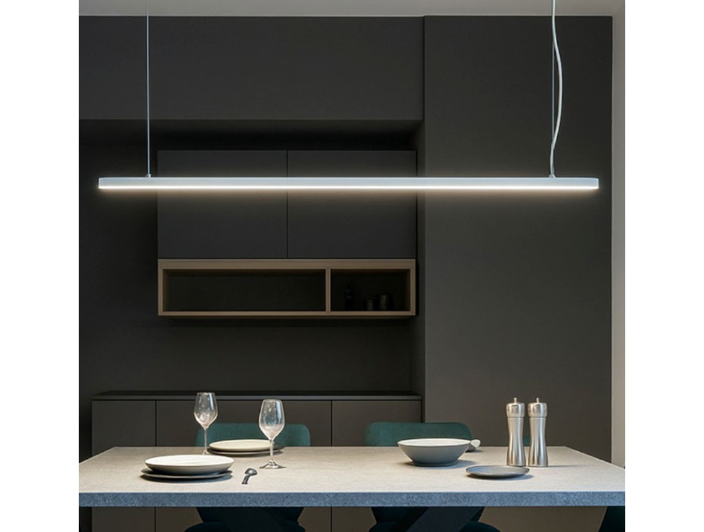 Die schlichte und elegante Doppelstrahl-Hängeleuchte aus der Link-Kollektion von Perenz sorgt für funktionale und stilvolle Beleuchtung in modernen Räumen wie Büros, Besprechungsräumen oder Essbereichen. Die doppelte Lichtabgabe – nach oben und unten gerichtet – erzeugt eine gleichmäßige, schattenfreie Ausleuchtung, ideal zum Arbeiten oder Entspannen mit maximalem Sehkomfort. Versandkostenfrei und 2 Jahre Garantie.