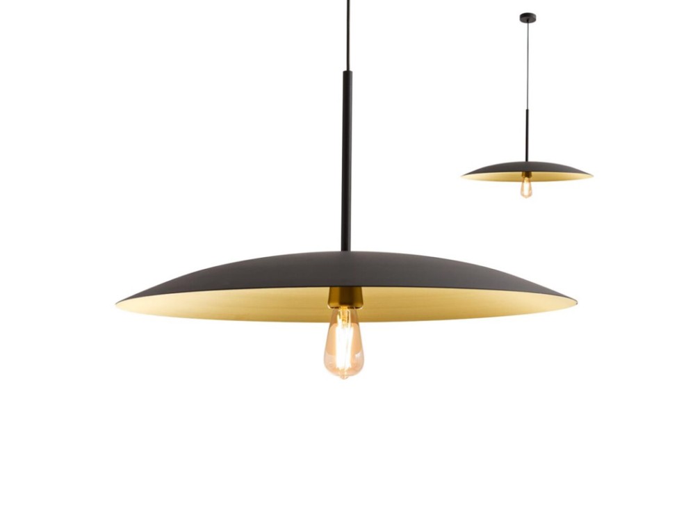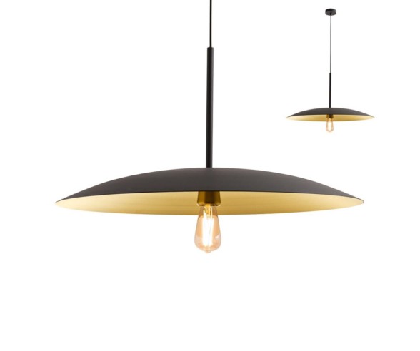 Strukturierte Pendelleuchte aus mattschwarz lackiertem Metall mit mattschwarzem Metalldiffusor außen und mattgoldenem Innenteil – perfekt für die Dekoration und Beleuchtung von Küche, Wohnzimmer und Schlafzimmer. Lassen Sie sich von dieser optisch ansprechenden Pendelleuchte verzaubern, einem wahren Design-Meisterwerk, das die Funktionalität von LED-Beleuchtung mit skulpturaler Ästhetik verbindet. Perfekt, um zum Blickfang Ihrer Räume zu werden.
