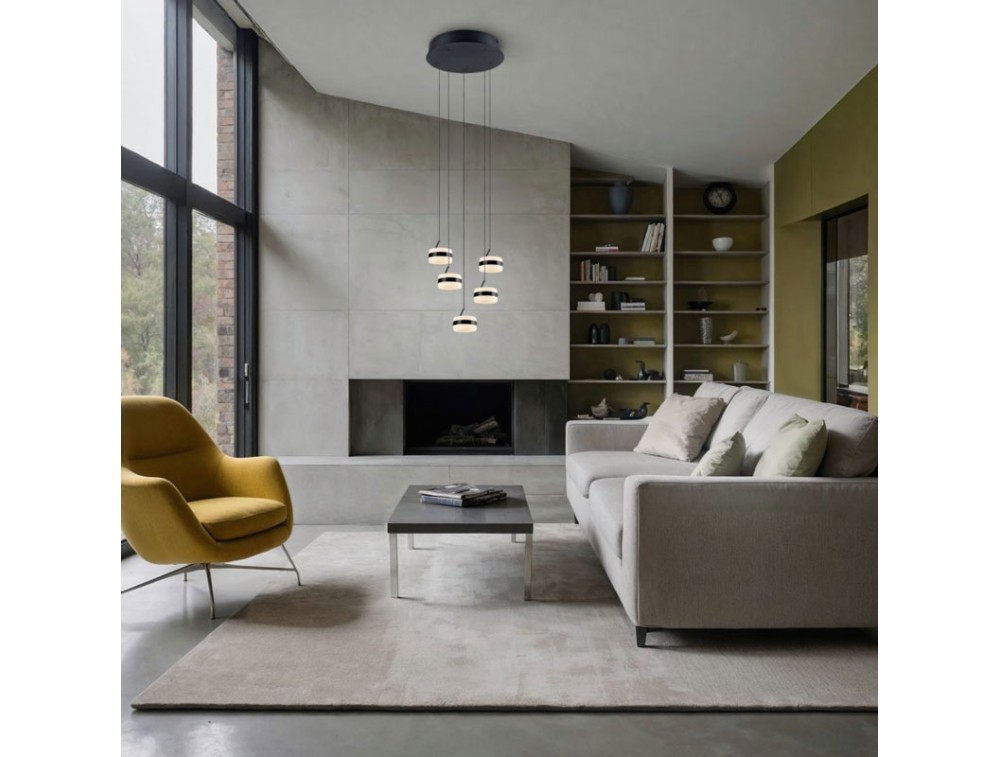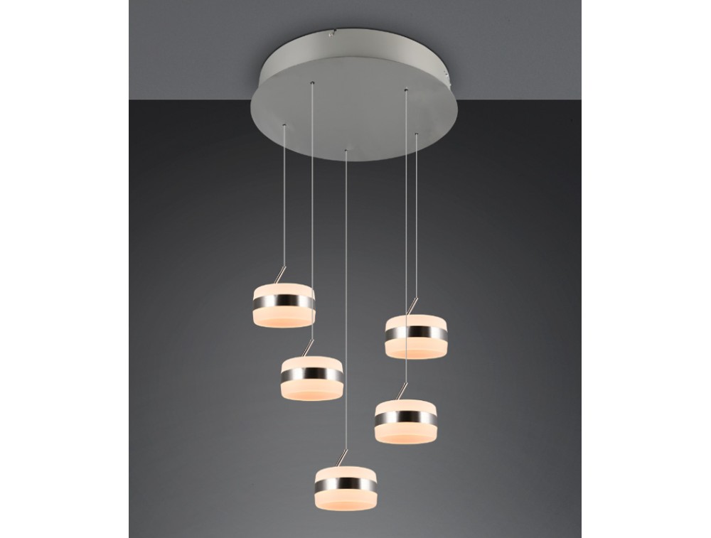Pendelleuchte aus Nickel oder schwarzem Metall, höhenverstellbar, mit LEDs und Dimmfunktion. Ideal für Küche, Wohnzimmer und Schlafzimmer.