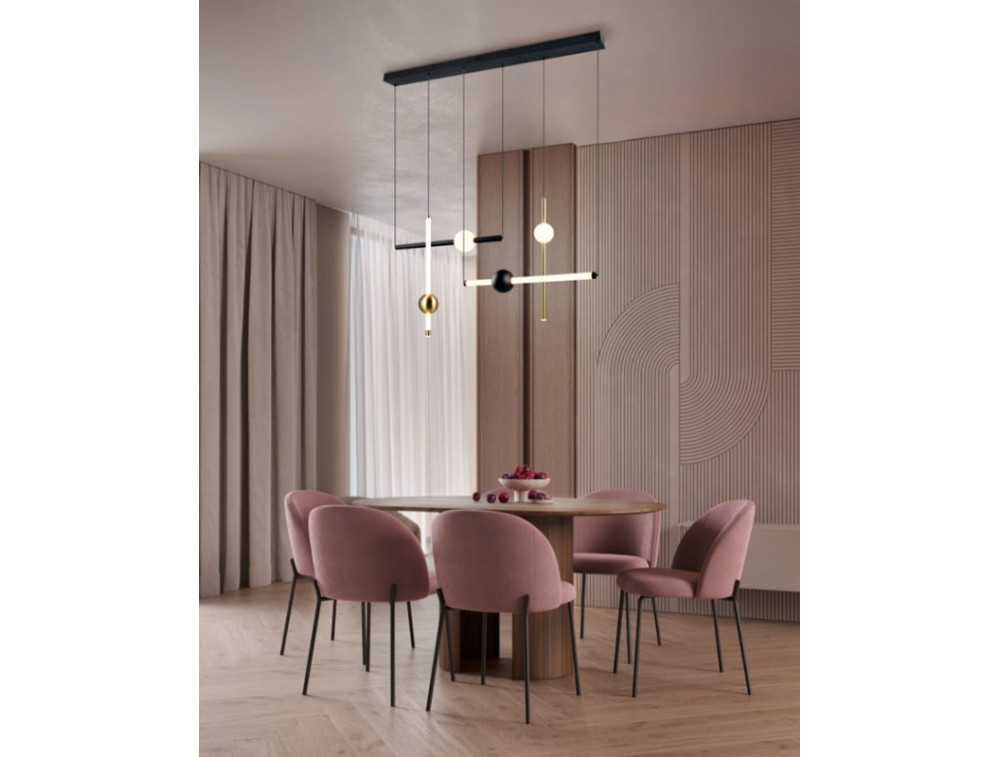 Diese Pendelleuchte besticht durch ihre asymmetrische Komposition aus geraden Linien und Kugeln sowie den eleganten Kontrast von Farben und Oberflächen. Die gekonnte Verwendung von Formen und Metallen macht sie zu einem echten Blickfang. Versandkostenfrei und 2 Jahre Garantie.