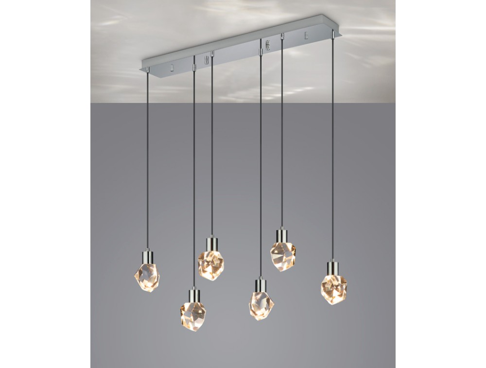 Diese 6-flammige Pendelleuchte vereint edles Kristallglas mit hochwertigem Metall und verleiht Ihrem Zuhause puren Glamour. Dank des integrierten Sensordimmers lässt sich die Helligkeit stufenlos regulieren, während die Lichtfarbe in verschiedenen Stufen eingestellt werden kann, um für jede Situation die perfekte Beleuchtung zu schaffen. Die Leuchte ist mit moderner LED-Technologie ausgestattet, die für ihre hohe Lichtqualität und Energieeffizienz bekannt ist. Im Vergleich zu herkömmlichen Halogenlampen können bis zu 80 % Energiekosten eingespart werden.