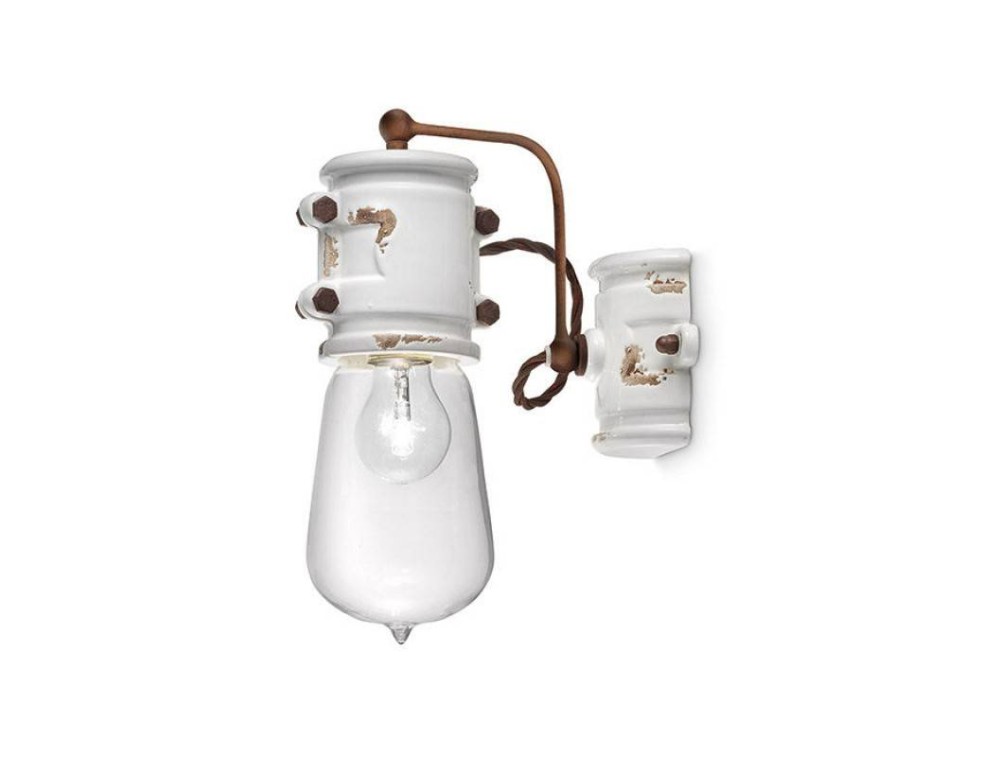 Ferroluce Beleuchtung, Wandleuchte mit Metallstruktur und Schirm aus Glas und Keramik, die in verschiedenen Farben emaillierte ist.
