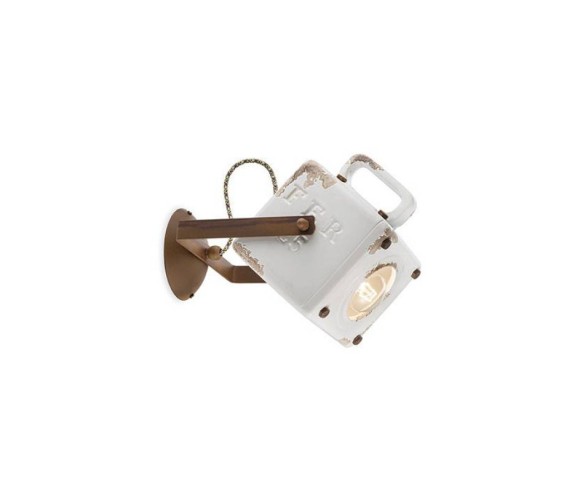 Wandleuchte aus gealterter und emaillierter Metallstruktur mit Bergmannstiel. Helle Farben, glänzende Oberflächen und raffinierte Zeichen der Zeit für ein aktuelles Profil in Form eines vergangenen Stils. Die Schrauben, in Corten-Farbe, sind das Detail, das diese Tischlampe vervollständigt und dem industriellen Geschmack ihr verleiht.