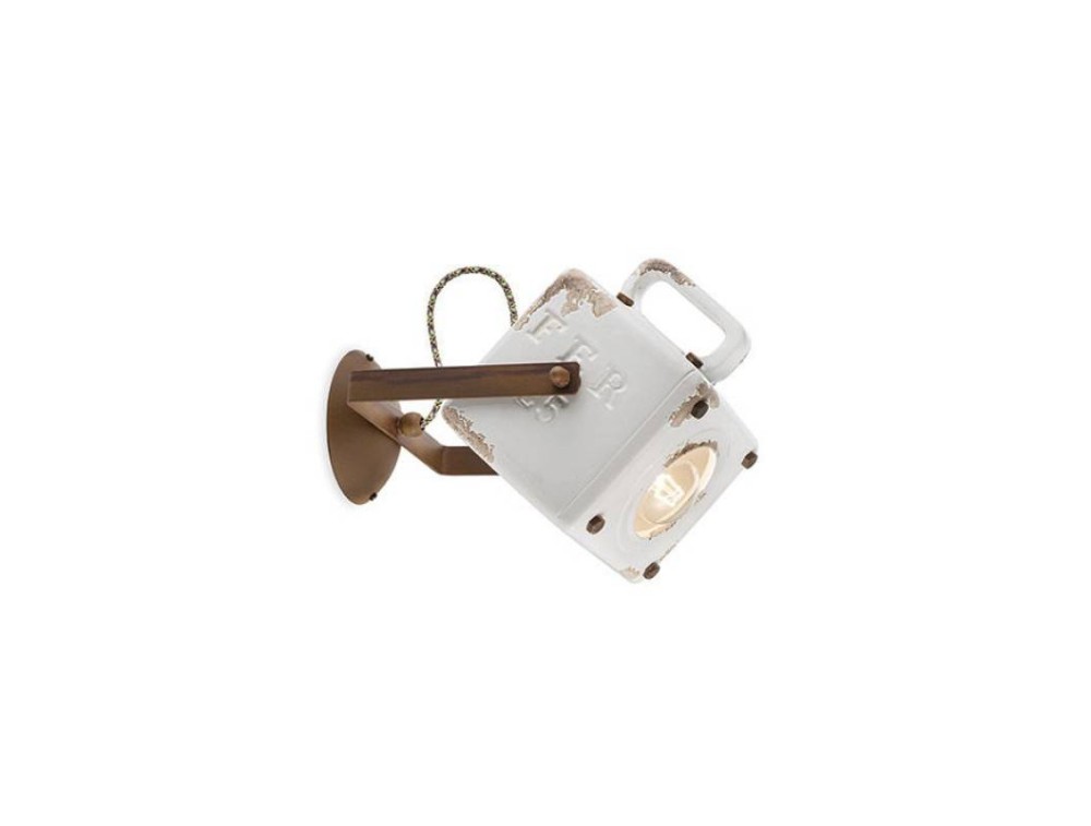 Ferroluce Beleuchtung, Wandleuchte aus gealterter und emaillierter Metallstruktur mit Bergmannstiel.