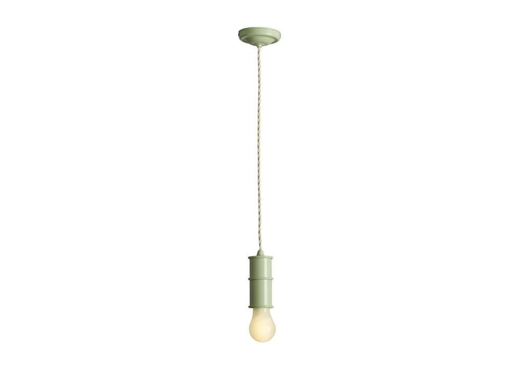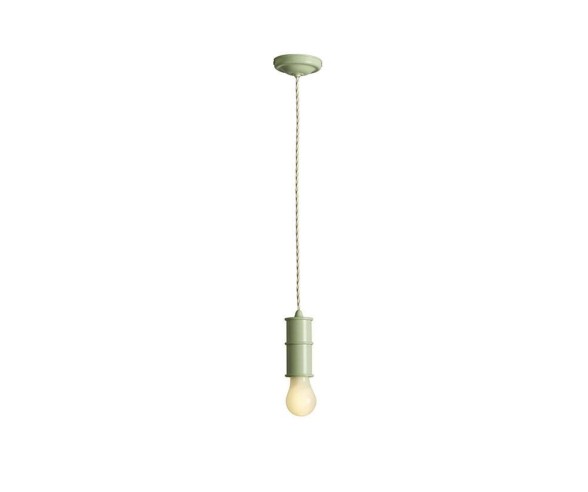 Pendelleuchte mit röhrenförmigen Körper in oxidiertem Messing oder mit Epoxidpulver lackiert. Die an der Decke montierte Version ermöglicht eine einfache Ausrichtung des Lichts. Das elektrische Kabel der hängende Version ist in Gewebe.