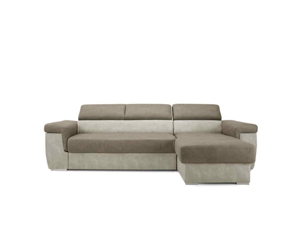 Capodarte Einrichtungszubehör, bettfertiges Ecksofa mit umkehrbaren Armlehnen, Struktur aus Nubukleder und Sitzfläche aus Stoff in verschiedenen Ausführungen Nubukleder Grau-Taupe, Nubuk Beige-Braun, Nubuk Taubengrau, komplett in Stoff. Behälter unter dem Sitz.