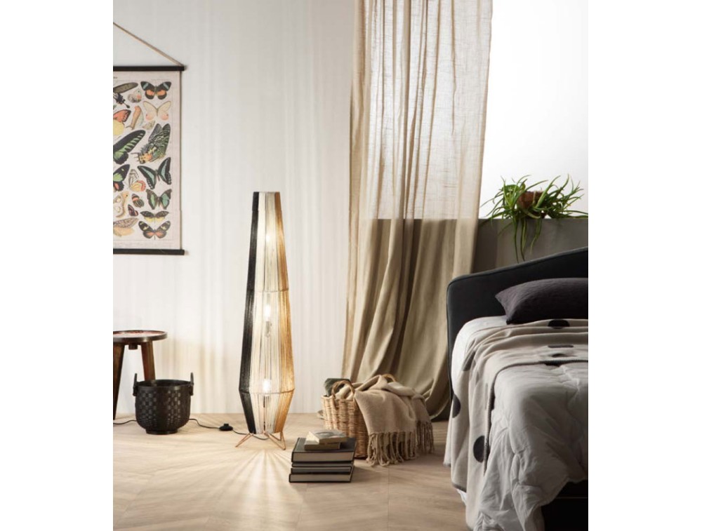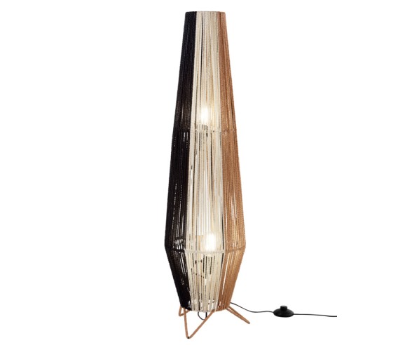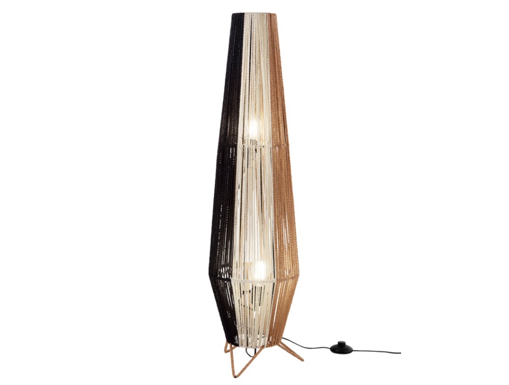 Diese Stehleuchte ist keine gewöhnliche Leuchte, sondern ein Designerstück, das Wärme und Authentizität ausstrahlt. Die um einen versteckten Rahmen gewickelten Kabelstränge sind nicht nur eine Hülle, sondern das eigentliche Element der Leuchte. Die Kombination der drei Farben erzeugt einen Streifeneffekt, der dem Raum Dynamik und einen Hauch von Kreativität verleiht. Der Versand ist kostenlos und die Garantie beträgt 2 Jahre.
