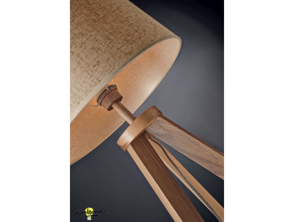 Holzgestell und sandfarbener Lampenschirm mit elfenbeinfarbener Struktur. Die Lampe besticht durch ihr Design, das natürliche Wärme und skandinavische Funktionalität vereint und sich perfekt eignet, um eine gemütliche Ecke im Wohnzimmer oder Arbeitszimmer zu schaffen. Sie ist ideal für alle, die eine angenehme und entspannende Beleuchtung suchen. Die Kombination aus Holz und Stoff harmoniert perfekt mit nordisch/skandinavischen, modernen und modern-rustikalen Einrichtungsstilen.