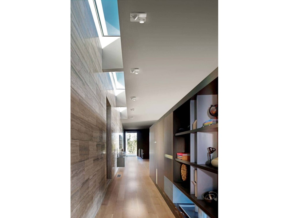 Strahler mit lackierter Aluminiumstruktur und transparentem Kunststoffdiffusor mit 45 ° -Optik. Spot einstellbar um 90 ° und um 350 ° drehbar. Das Gelenk ermöglicht es Ihnen, den Lichtstrahl zu lenken, wodurch diese Lampe nicht nur für die häusliche Umgebung, sondern auch für Geschäfte, Ausstellungen und kommerzielle Aktivitäten eine ideale Wahl ist. Zu Hause fügt es sich mit seinem modernen Design in jeden Raum ein: Flur, Eingang, Wohnzimmer, aber auch Küche oder begehbarer Kleiderschrank.