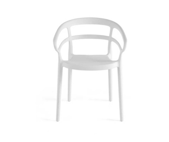 Origineller und moderner Stuhl, der sich perfekt an jede Umgebung anpasst, ob drinnen oder draußen. Perforiertes Thema im gesamten Sitz und abgerundete Form der Rückenlehne.