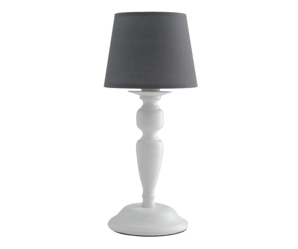 Weiße Tischlampe aus Metall mit grauen Stoffschirmen. Für Küche, Wohnzimmer und Schlafzimmer.