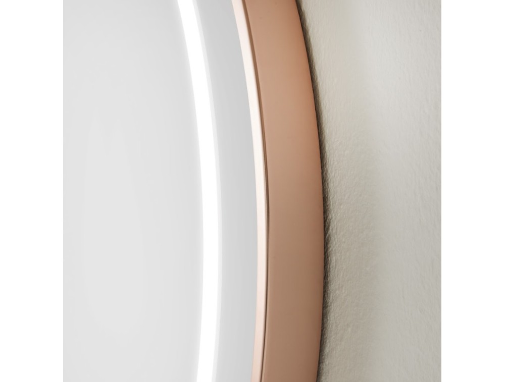 Runder Spiegel mit Messingrahmen und 10 mm sandgestrahlter Innenfläche, LED-Hintergrundbeleuchtung