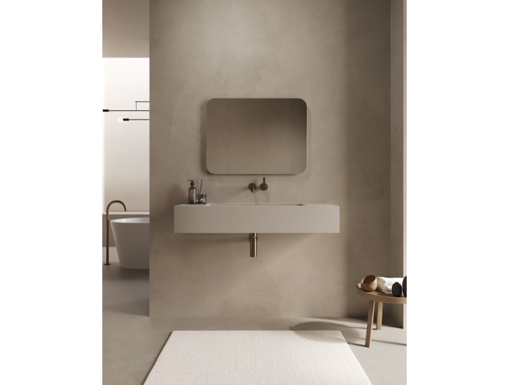 Er besticht durch sein schlichtes und beruhigendes Design mit sanften geometrischen Linien und einer klaren Ästhetik. Der rahmenlose Spiegel fügt sich dezent in die strukturierte Wand ein, fast so, als wäre er eingelassen oder natürlich integriert. Versandkostenfrei und 2 Jahre Garantie.