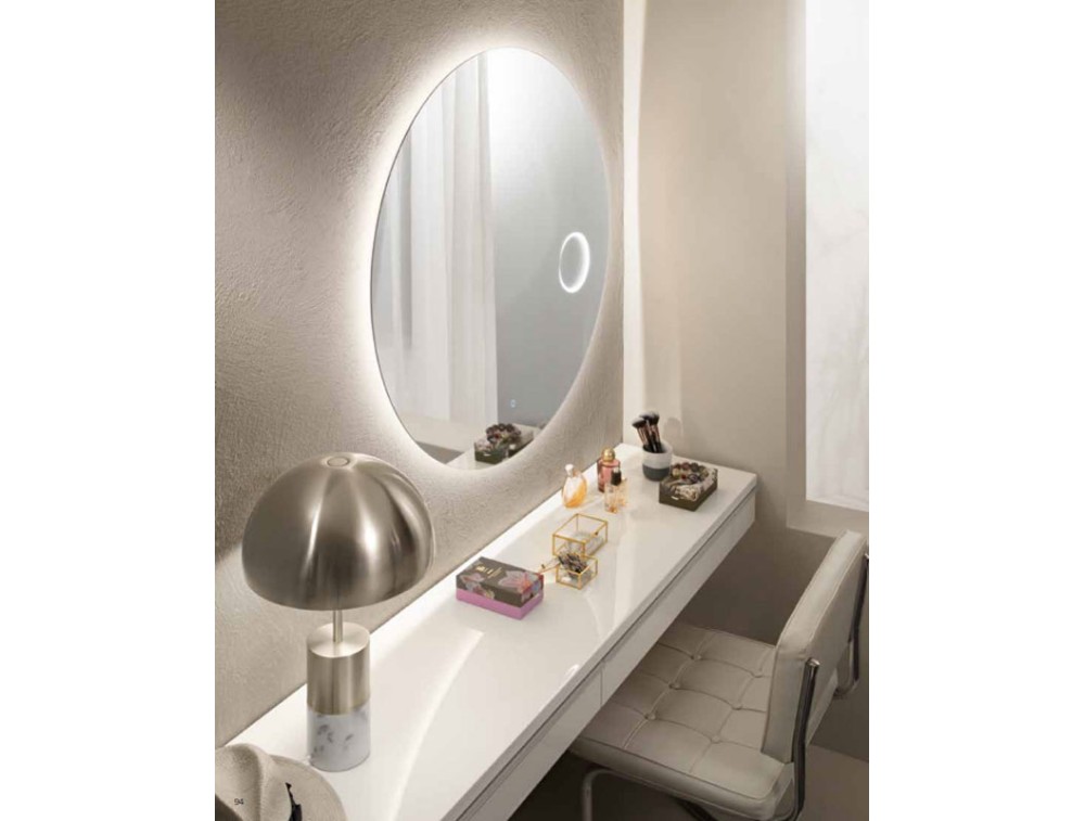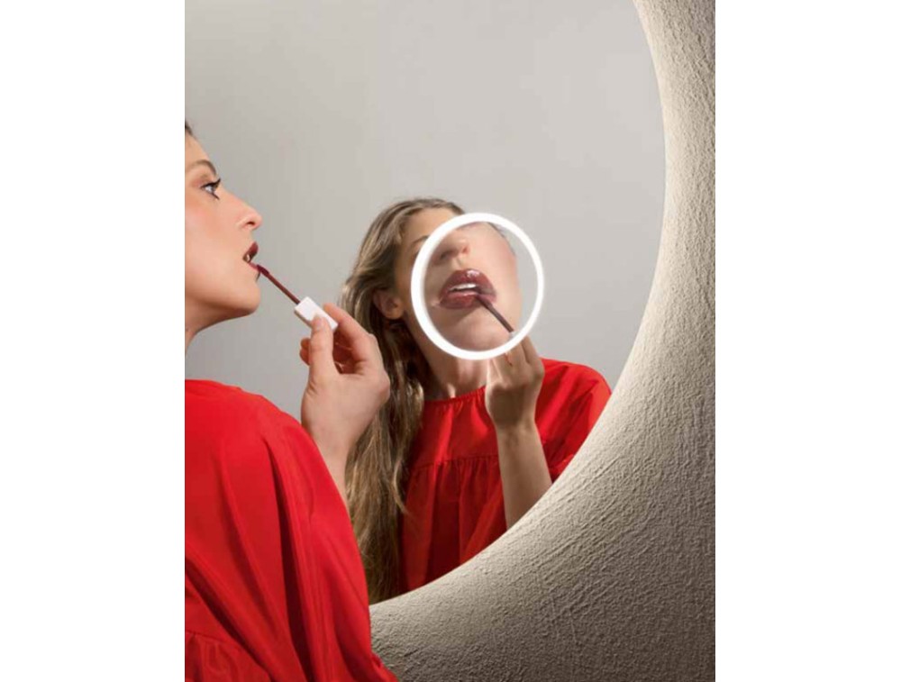 Runder Spiegel mit integrierter 3-facher Vergrößerung, Hintergrundbeleuchtung und vielfältigen Touch-Bedienelementen: 3 Farbtemperaturen, Dimmfunktion und Memory-Funktion. Elegantes Design und innovative Technologie für mehr Komfort. Lebensdauer der Lichtquelle: 30.000 Stunden. Explosionsgeschützte PVC-Folie. Ideal für Make-up und Hautpflege, da das Gesicht gleichmäßig ausgeleuchtet wird.
