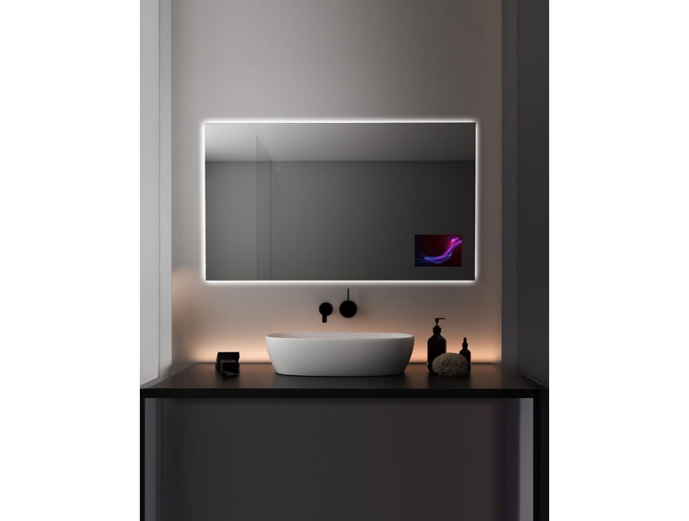 Schutzart IP44. 5 Jahre LED-Garantie. 4 mm Spiegelstärke. Dieser Spiegel bietet eine etwas dunklere Reflexion als ein herkömmlicher Spiegel und schafft so eine elegante und dezente Atmosphäre. Seine Oberfläche mit reduzierter Reflexion verleiht ihm eine moderne und raffinierte Note – ideal für anspruchsvolle Räume. Der wahre Zauber entfaltet sich im Dunkeln: Der Spiegel verwandelt sich und erzeugt einen faszinierenden Geistereffekt. Die hellen Bereiche verschwinden, während die Oberflächen perfekt spiegelnd bleiben und ein bezauberndes Spiel von Transparenz und Reflexionen entsteht. Perfekt für moderne Möbel, Objektprojekte oder Projekte, in denen Design und Innovation aufeinandertreffen.