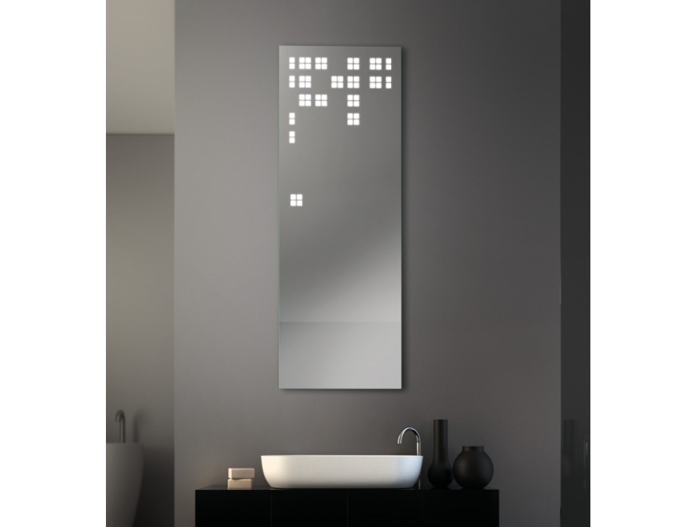 Rahmen aus satiniertem Edelstahl. Schutzart IP44. 5 Jahre LED-Garantie. 4 mm Spiegelstärke. Sie erinnern an moderne Wolkenkratzer. Ausgestattet mit einem innovativen LED-Beleuchtungssystem ermöglichen diese Spiegel die Anpassung der Lichtintensität über praktische, direkt in die Spiegelfläche integrierte Bedienelemente.